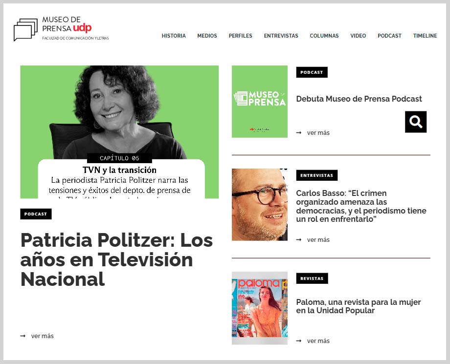 Este museo virtual que rescata la historia de la prensa chilena nació en 2007, cuando el entonces director de la Escuela de Periodismo de la Universidad Diego Portales, Andrés Azócar, montó un sitio que destacaba por su innovación: con una línea de tiempo como estructura principal, permitía navegar los principales hitos del periodismo nacional y además recibía colaboraciones de sus usuarios para enriquecer su contenido: audios, portadas históricas y hasta documentales sobre periodismo.